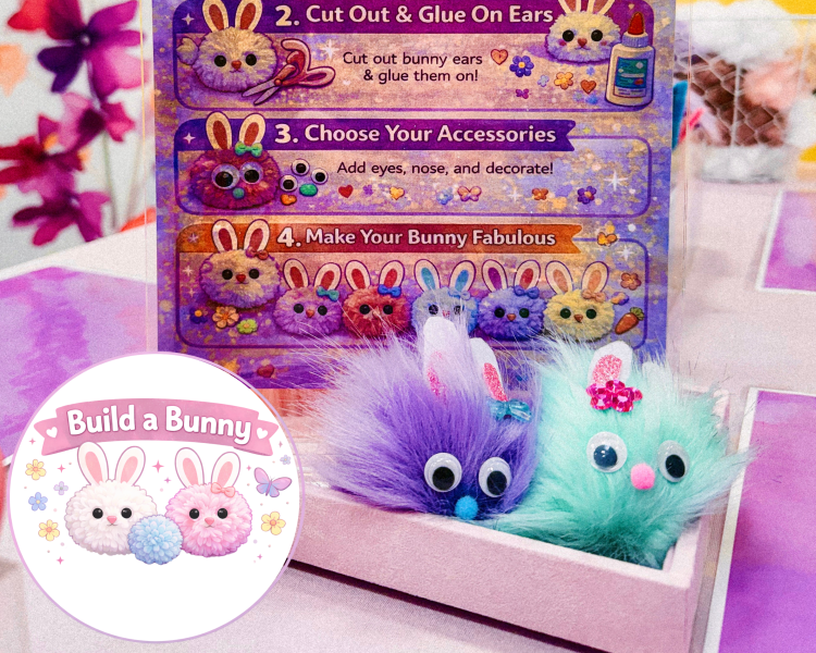Hop into fun with our Build a Bunny Craft table! This craft features all the supplies your guests will need to make their own adorable Easter bunnies! Each child will start by picking out their own fluff ball from an assortment of colors. Then, they will choose googly eye, and a nose for their bunny. Our expert craft assistant will help them cut out their fleet bunny ears and glue all the pieces together to each bunny. After, guest can choose from a variety of gems to customize their craft creation and voila! their bunnies are ready to hop along home with them! Perfect for Easter parties and events, or any bunny enthusiast!