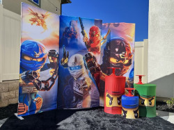 This awesome setup transforms your party space into the world of Kai, Lloyd, Jay, and the whole ninja crew. With bold colors, themed decorations, and cool props, your little ninjas will feel like they’ve stepped right into their favorite show!